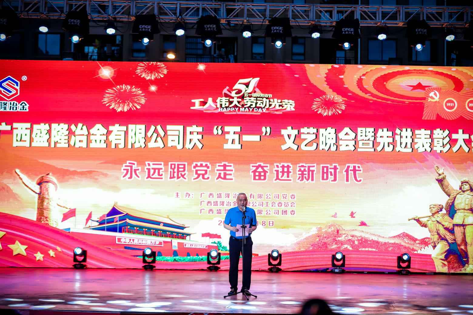5月8日晚,开云手机web版登录入口-开云(中国)盛隆佳园文化广场歌声嘹亮,掌声如潮。由开云手机web版登录入口-开云(中国)党委、工会委员会、团委联合主办的“永远跟党走,奋进新时代——庆‘五一’文艺晚会暨先进表彰大会”在这里隆重举行。公司常务副总经理陈亮出席晚会并致辞,副总经理兼安环总监吕华民、副总经理兼技术中心主任刘光穆、总工程师兼规划发展部经理梁新亮、总经理助理兼广西广盛高强耐磨新材料有限公司总经理王文凯、党委常务副书记游元喜、工会主席兼总经理办公室主任刘明奇及各厂部主要领导出席。